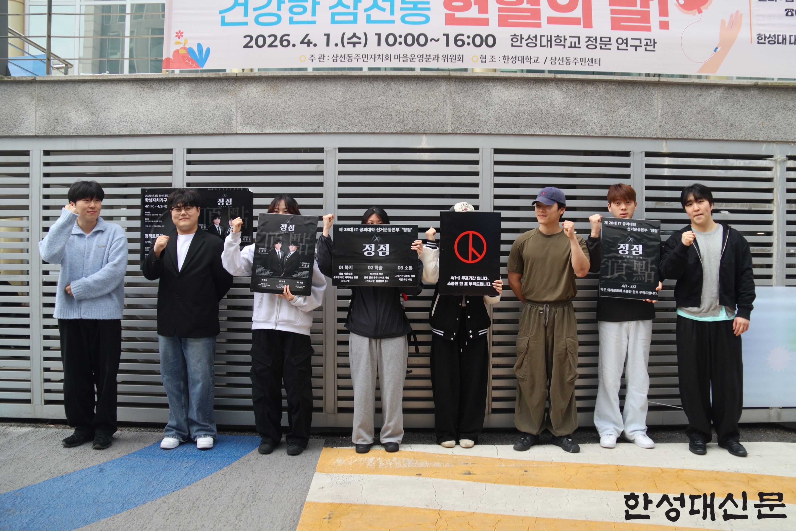 제28대 IT공과대학 학생회 선거 결과 ‘정점’ 선거운동본부의 김동현(기계전자 3) 정학생회장 후보와 이준호(컴공 4) 부학생회장 후보가 찬성 960표(85.26%), 반대 141표(12.52%)로 당선됐다. 투표에는 재적인원 1,975명 중 1,126명(57.01%)이 참여했다. 김 당선자는 “지난 학기 학생회가 공석이었던 단과대학은 IT공과대학이 유일했다”며 “학생회의 공석으로 인한 학우들의 불편을 개선하고 진일보하는 학생회가 되도록 노력하겠다”고 결심을 밝혔다.