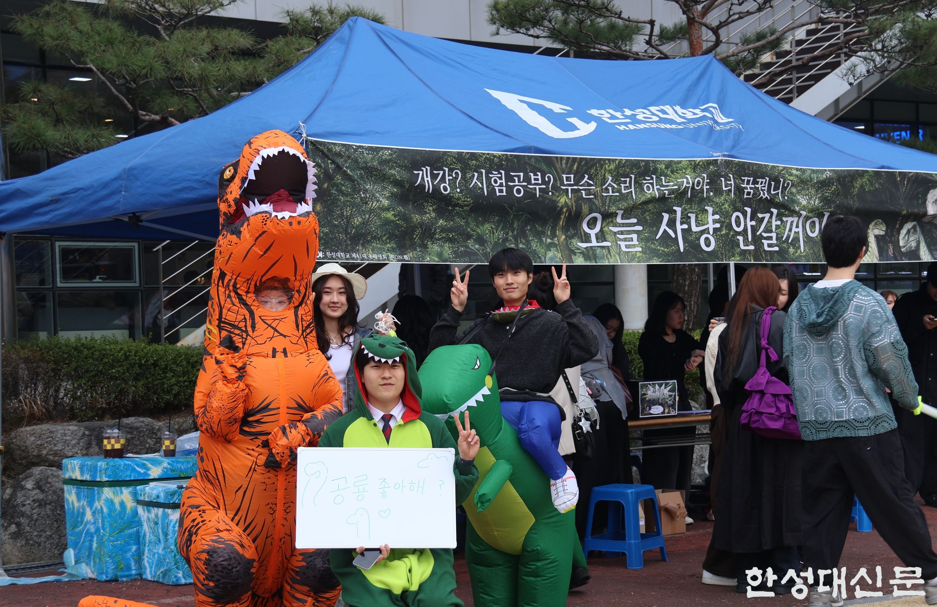 온(ON:穩)은 공룡 사냥을 주제로 3가지 미니게임을 진행했다. 공룡 사진 보고 이름 맞히기 게임, 공룡 둥지에 탁구공 넣기 게임, 공룡 퍼즐 게임 등으로 구성됐다. 준비된 게임을 모두 통과하는 참가자는 간식 등이 포함된 경품 추첨권을 받았다. 또한 부스 참가자 전원에게 공룡에이드와 초콜릿 등 간식이 제공됐다. 정윤지(문콘 4) 총학생회장은 “운영진이 주제와 맞게 공룡 의상을 입고 잔디광장을 돌아다니기도 했다”며 “학우들의 부스 접근성과 참여도가 높았다”고 전했다.