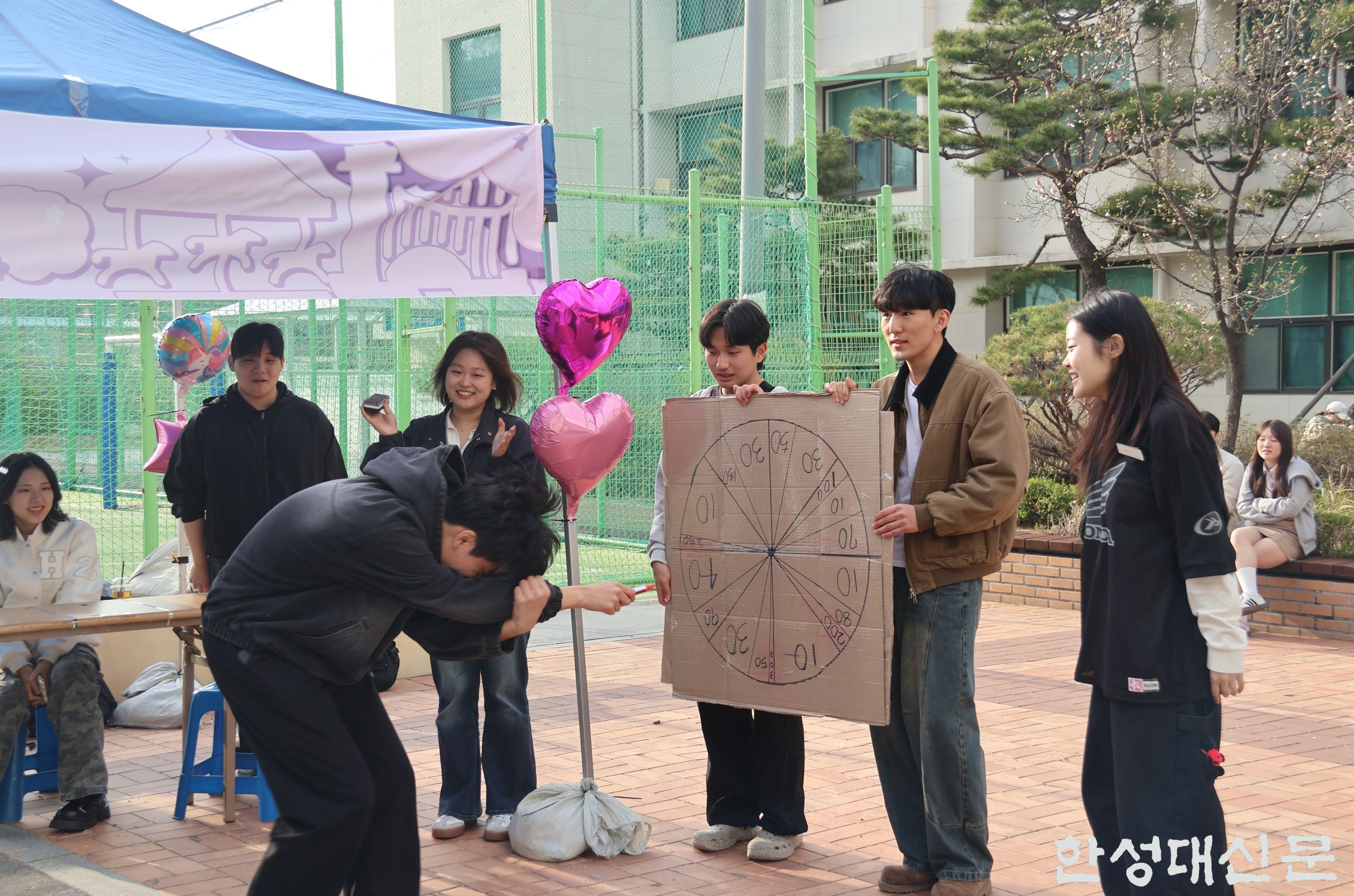 만우절 행사가 교내 잔디광장에서 지난 4월 1일 진행됐다. ▲총학생회 ‘온(ON:穩)’ ▲크리에이티브인문예술대학 학생회 ‘인화’ ▲미래융합사회과학대학 학생회 ‘도성’ ▲디자인대학 학생회 ‘라이트’ ▲창의융합대학 학생회 ‘사계’ ▲기계전자공학부 학생회 ‘여백’ 등이 부스를 운영했다.