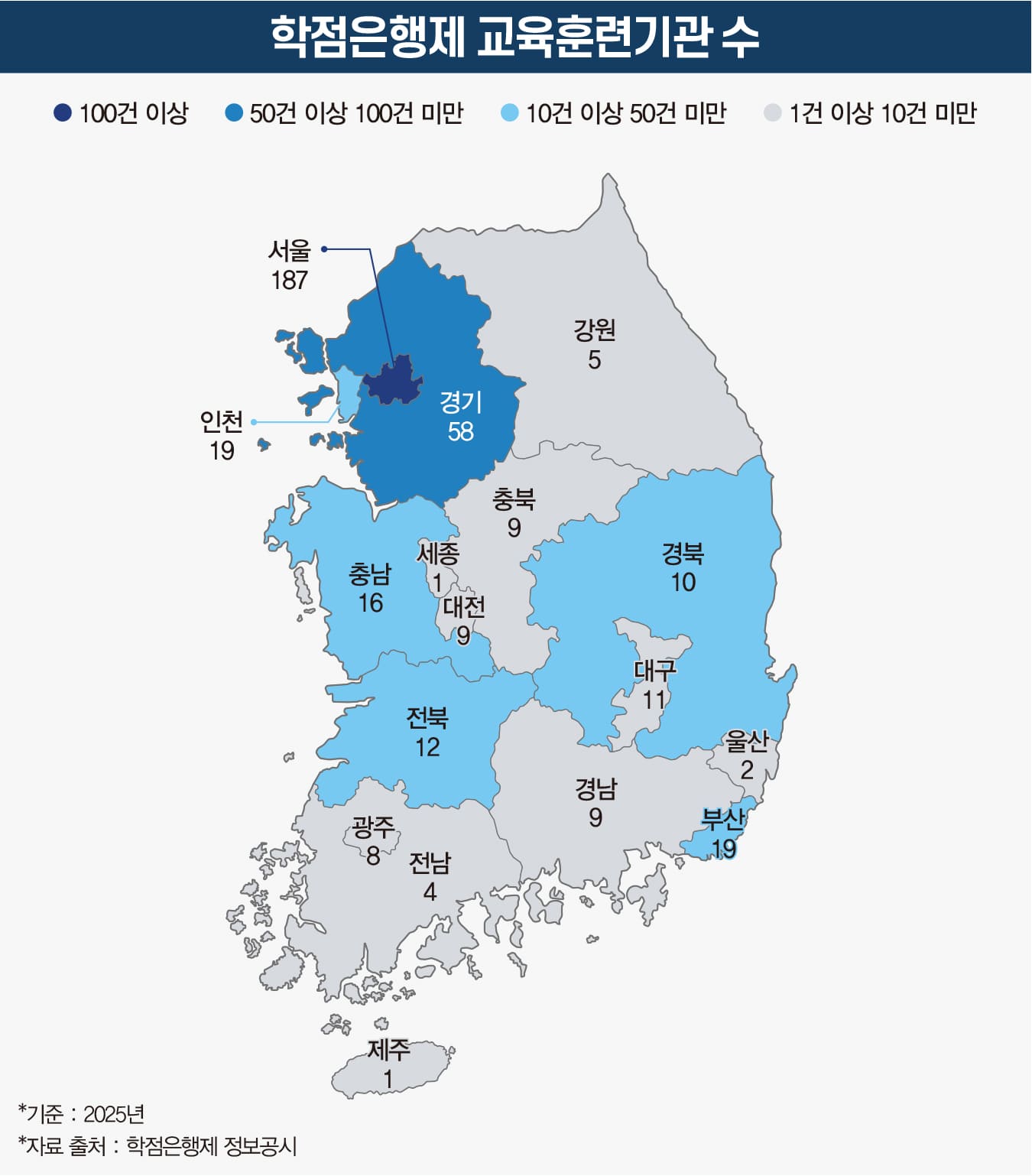 학점은행제 교육훈련기관의 수도권 편중도 한계로 지적된다. 학점은행제 정보공시 홈페이지에 따르면 전국 380개중 187곳이 서울에 몰려 있으며 비수도권은 고작 116곳에 그쳤다. 특히 기술, 예능계 학원의 경우에는 서울에만 집중돼 있는 실정이다. 이는 평생교육의 균등한 기회 제공이라는 본래 취지에서 벗어나 있다. 박 교수는 “서울과 같은 도시에는 교육받을 수 있는 곳이 많다”며 “아무리 원격으로 교육을 진행한다고 하더라도 지방에서 공부하기를 원하는 사람들에겐 어려움이 존재한다”고 전언했다.