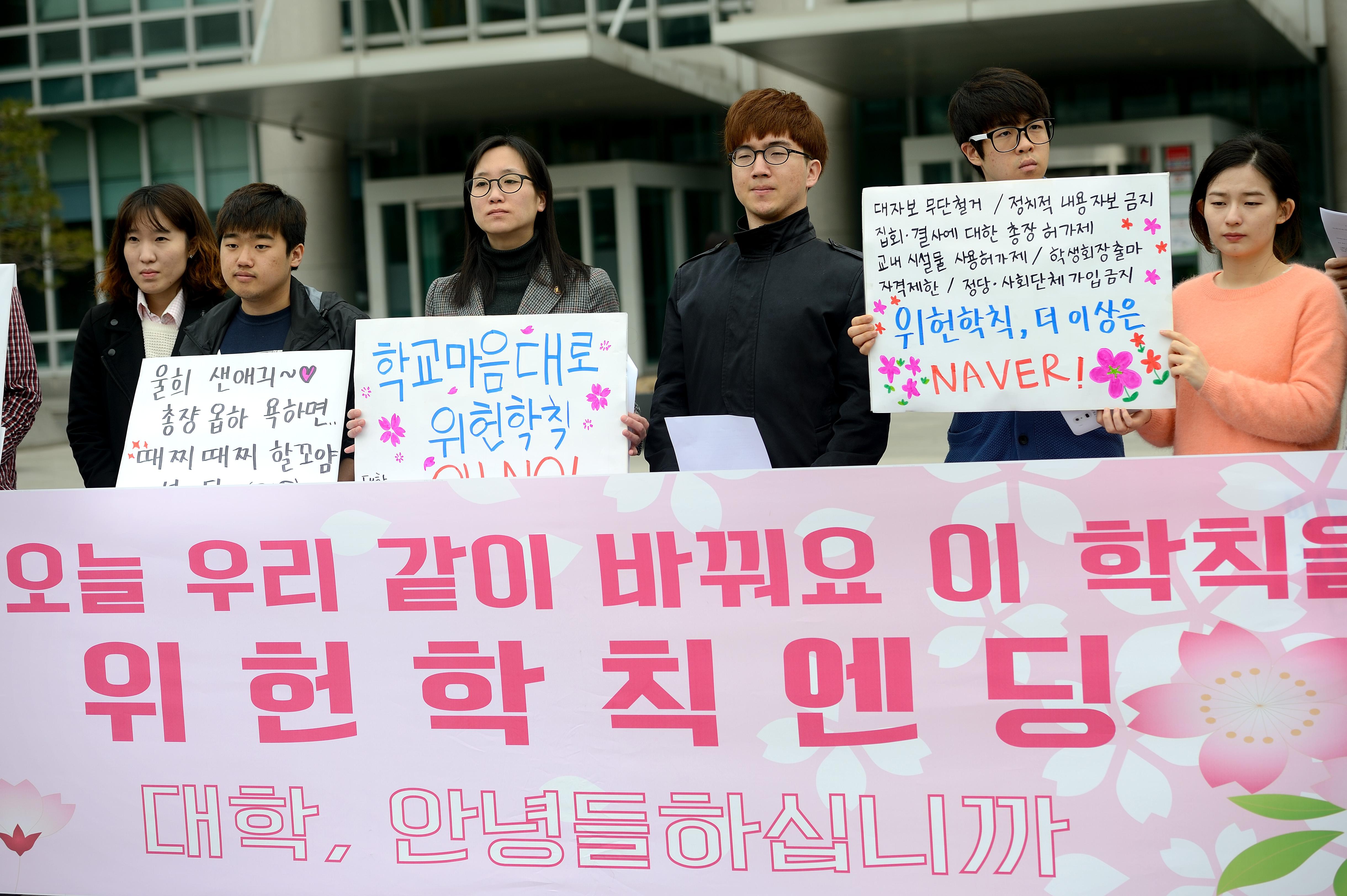 유신정권 시절의 통제 조항이 존재하는 걸 인지하고 있으나 대학이 이를 방치하고 있다는 지적도 제기된다. 2008년 헌법재판소에서 정치적 견해의 표현은 교육 목적과 양립 가능하다고 판시하며 학칙의 통제성을 지적했다. 2022년 국가인권위원회(이하 인권위)는 교내 게시물 부착 등을 사전 허가 대상으로 삼아 학생들의 표현의 자유를 침해하고 있다며 시정을 권고한 바 있다. 그럼에도 실제 학칙 개정으로 이어지지 않으며 통제의 유물로 남아있는 상황이다. 임은희(대학교육연구소) 연구원은 “비민주적 학칙이 개정되지 않고 방치돼 있는 것은 학교의 문제”라고 전했다.