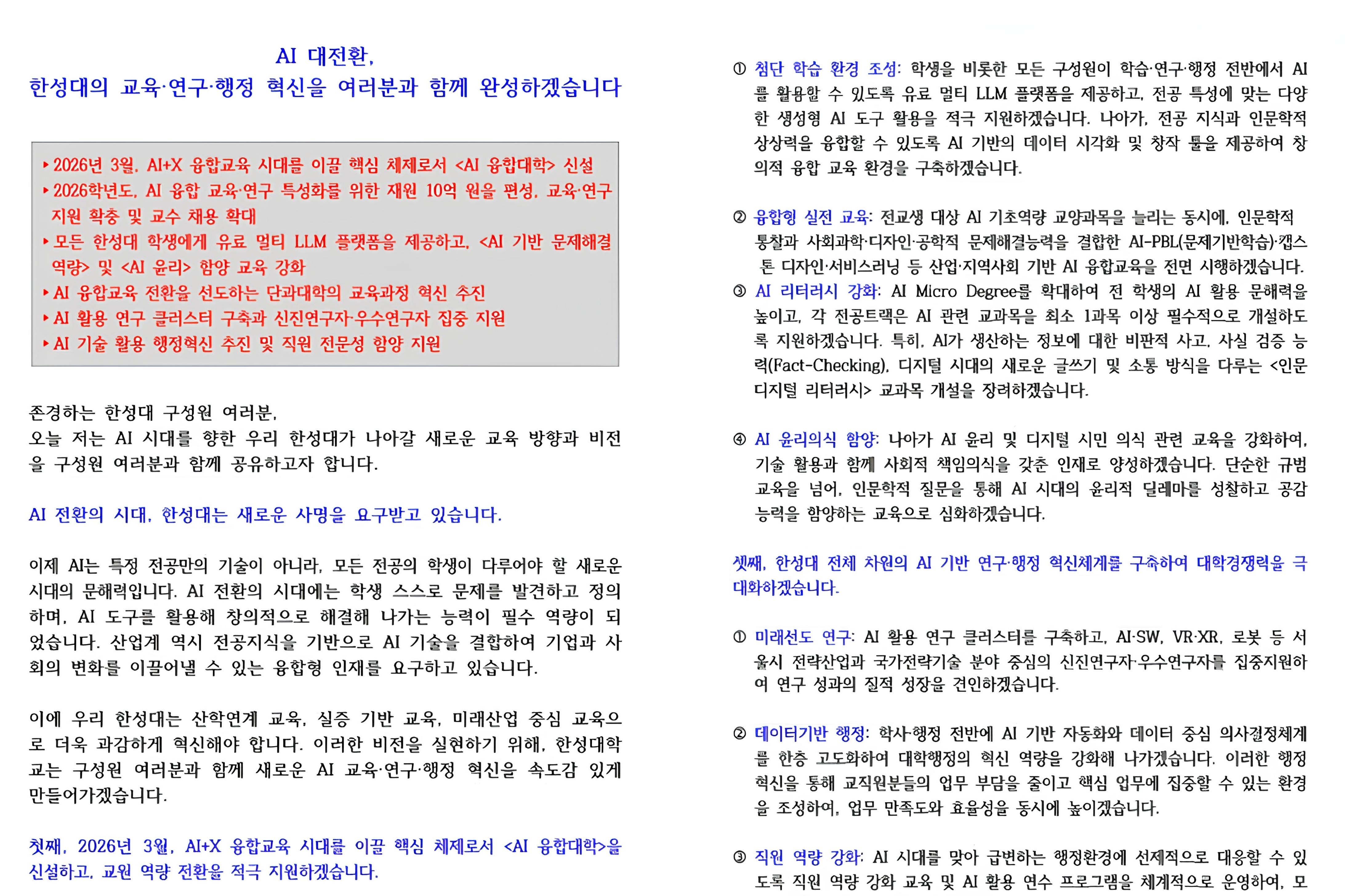 대학본부 학생 교육을 위해 투명하고 책임감 있게 활용할 것